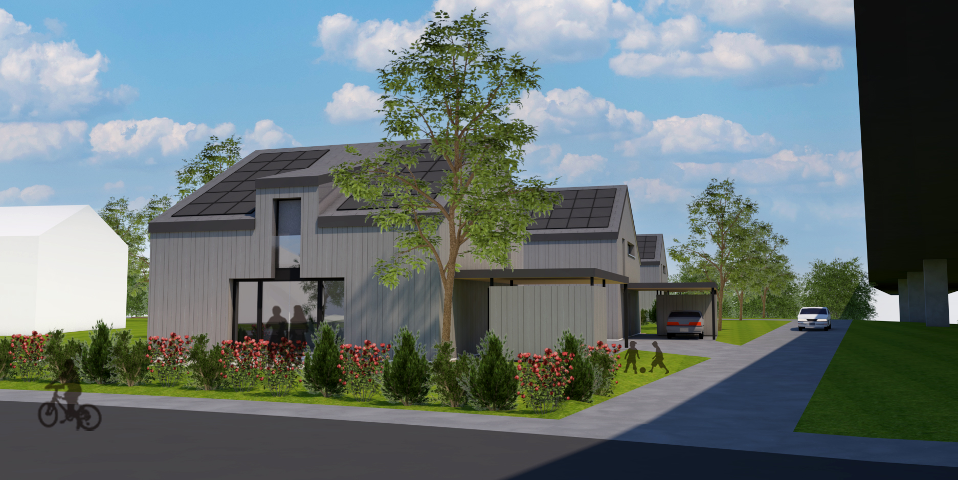 Optimisation des volumes avec la réalisation de 2 appartements de 4 pièces au 1er étage et 3.5 pièces dans le volume des combles.